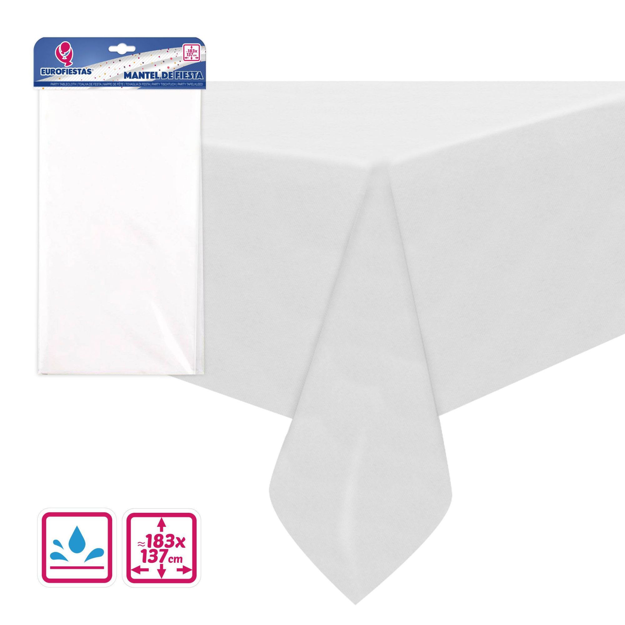 l mantel blanco contiene un mantel de plástico para celebraciones. Disponible en diferentes colores.