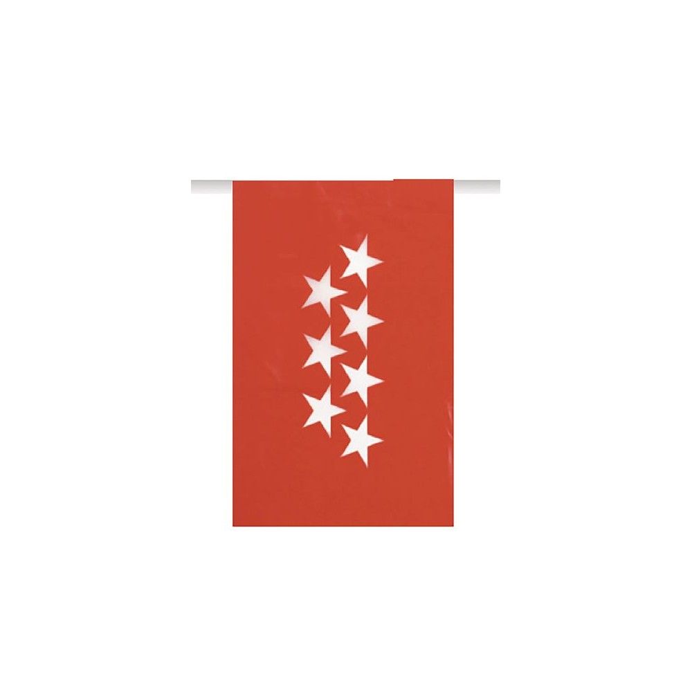 Tira de banderas de 50 metros de banderas de la comunidad de madrid, para decorar plazas, calles o locales. La bandera esta cosida a la tira de plastico para una mejor sujeccion y resistencia a las condiciones ambientales.