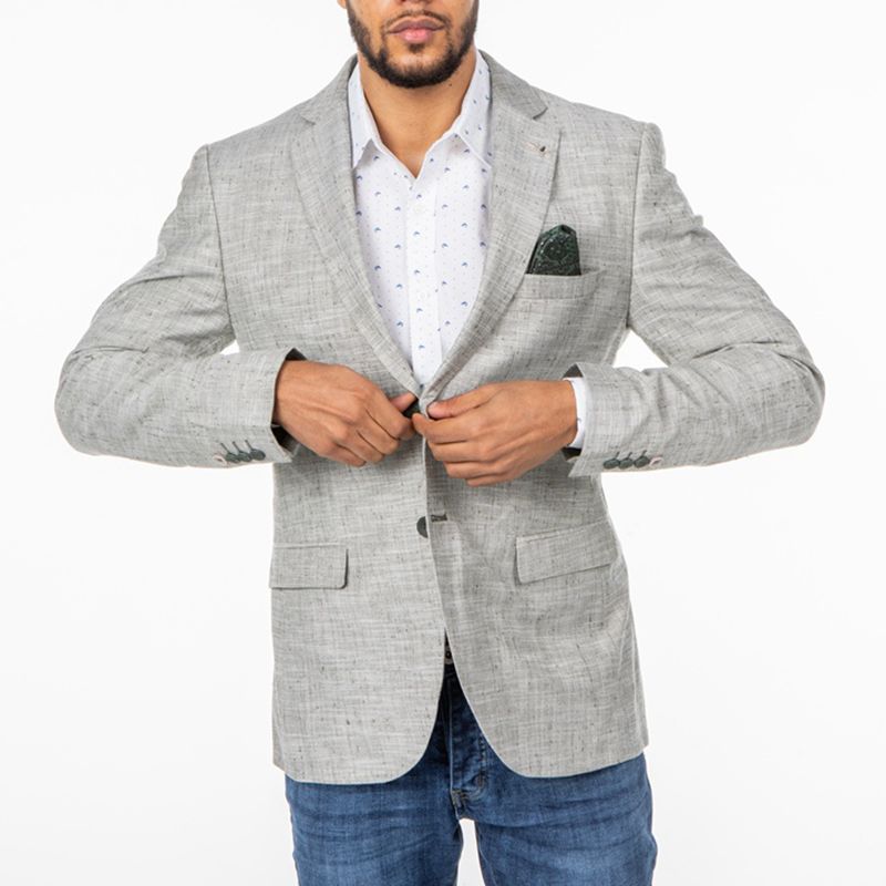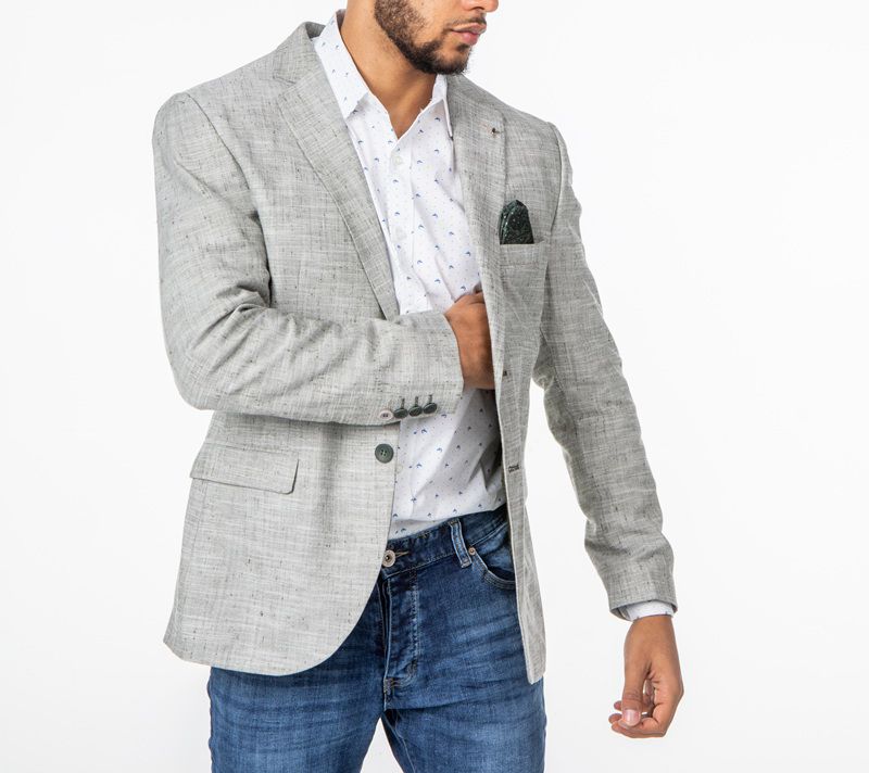 Americana de primavera con bolsillos y solapas pequeñas. Detalle de 4 botones ficticios en los puños. Con forro interior en la parte delantera.