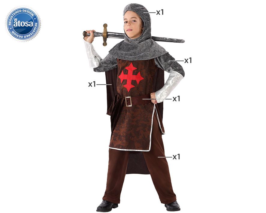 El disfraz de cruzado medieval infantil contiene capucha, capa, camiseta, cinturón y pantalón. No incluye espada.