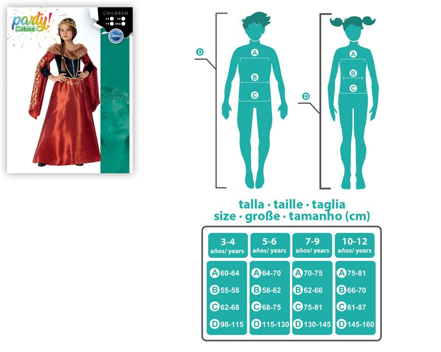 El disfraz de dama medieval rojo contiene un vestido de dama medieval. Gran variedad y surtido en disfraces medievales para niñas, desde damas y reinas hasta doncellas y taberneras, gran surtido en disfraces medievales infantiles.