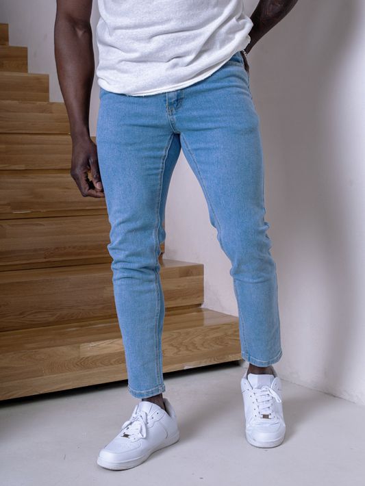 Jeans skinny, tobillero con 5 bolsillos y trabillas.