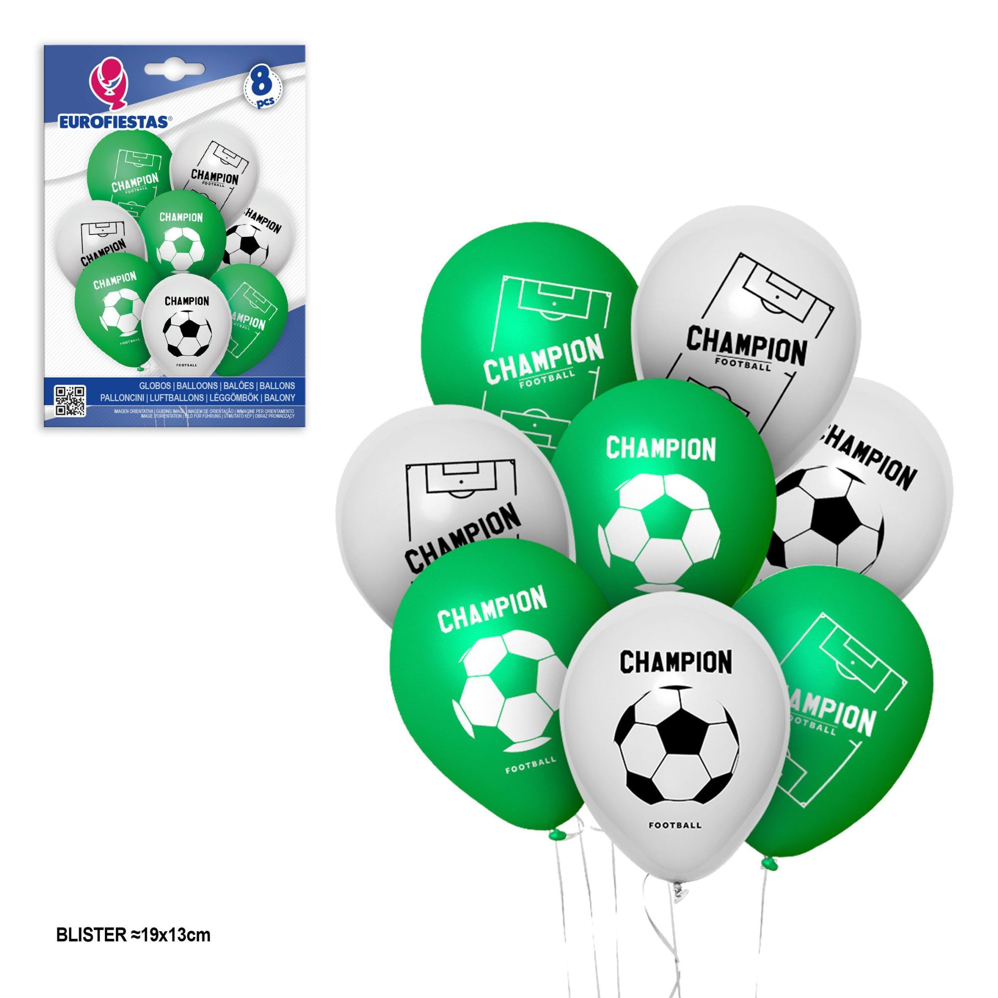 La bolsa de 8 globos contiene globos blancos y verdes con dibujos de futbol. Gran variedad y surtidos en globos para las fiesta de cumpleaños.