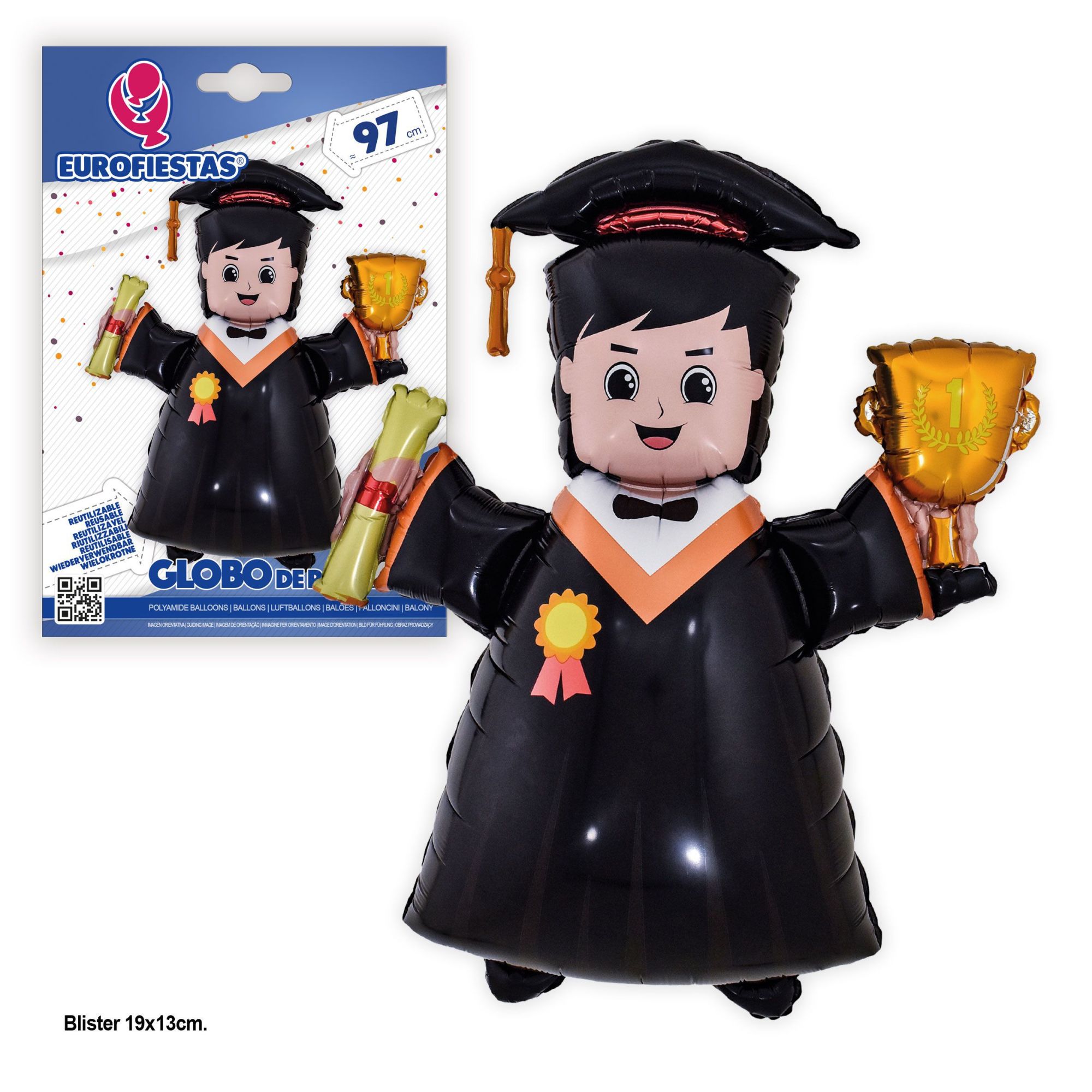 El globo de niño de foil contiene un globo para inflar con helio o con aire. Gran variedad y surtido en decoración para fiestas de graduación.
