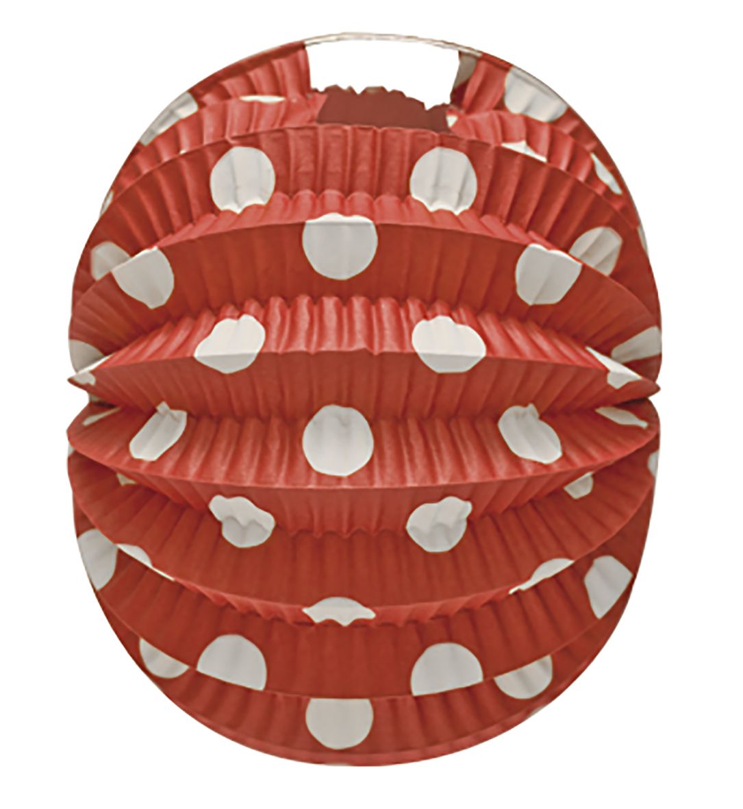 Farol de 22 cm de diámetro de color rojo con puntos blancos. Una decoración ideal para las ferias, decora la carpa con estos faroles coloridos y originales para dar un toque festivo.