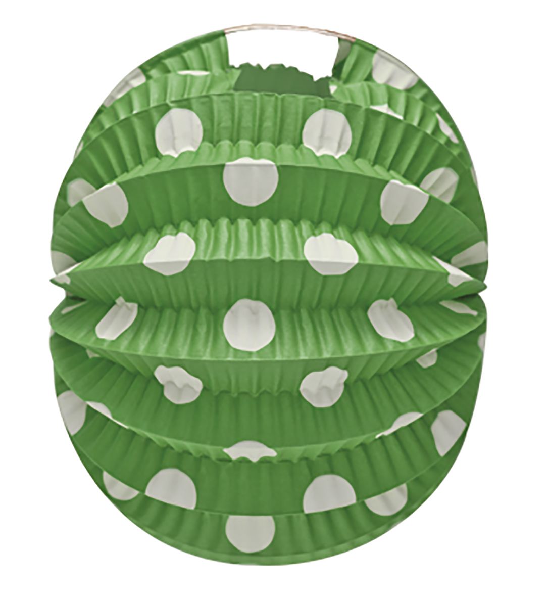 Bolsa de 12 faroles de papel 22 cm. Lunares Blanco sobre verde