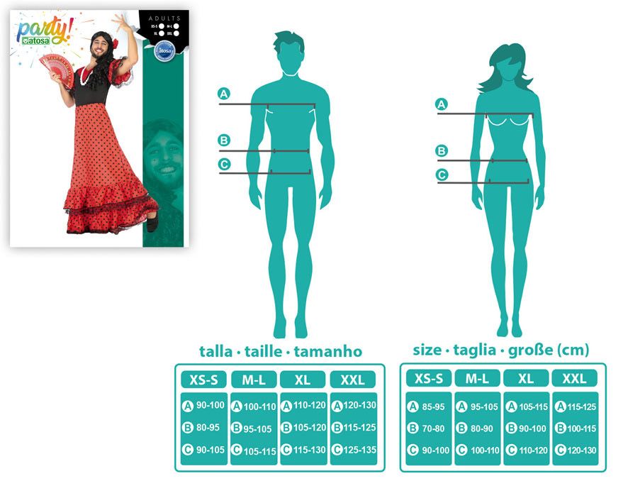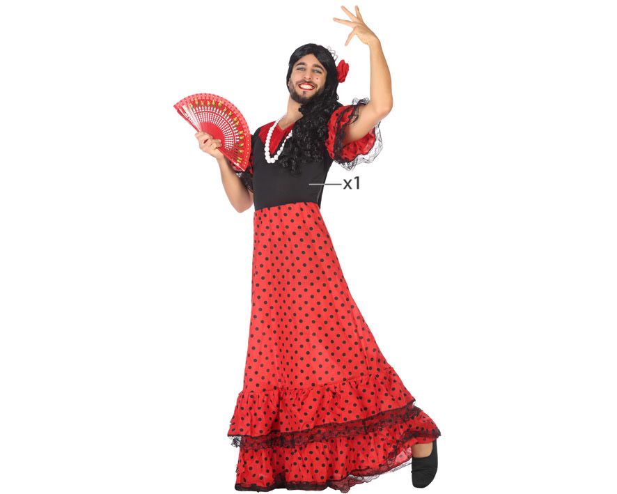 Disfrazate con este original disfraz de flamenca para hombre, un disfraz pensado para disfrazar al novio en las despedida de soltero o para disfrazarse todos los amigos en carnaval.