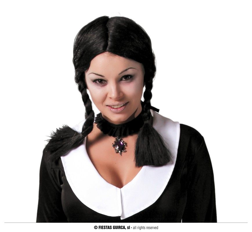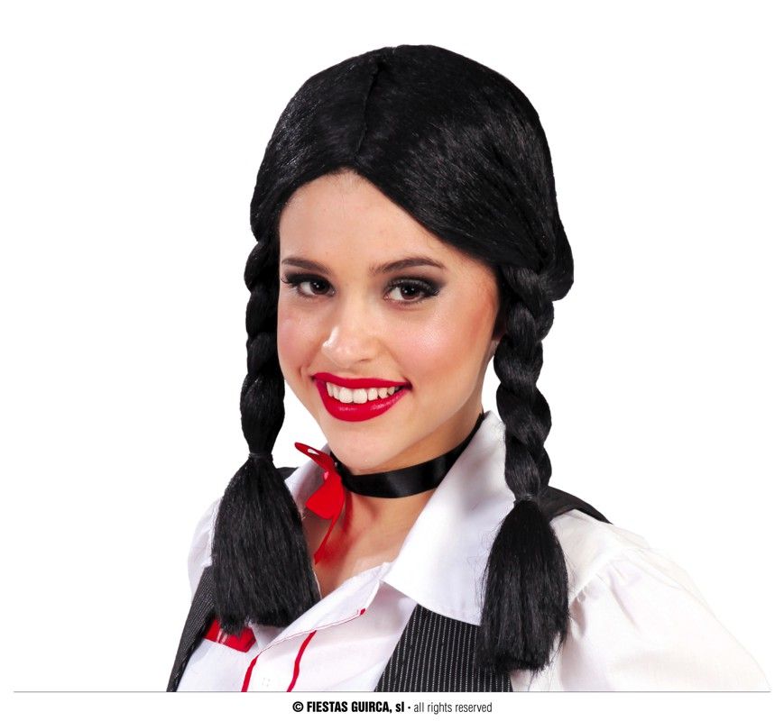 Peluca con trenzas negra para disfrazarte en carnaval, halloween.