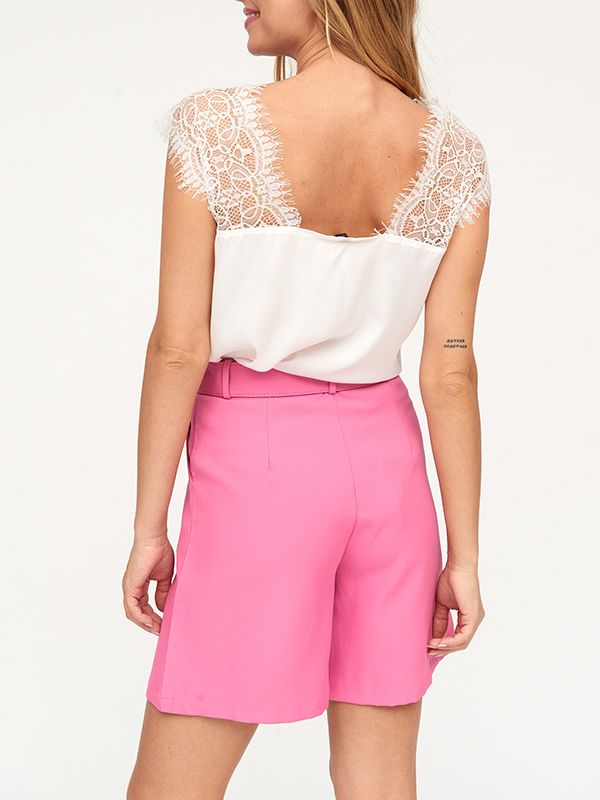 Blusa lencera con tirante ancho de encaje y escote pico.