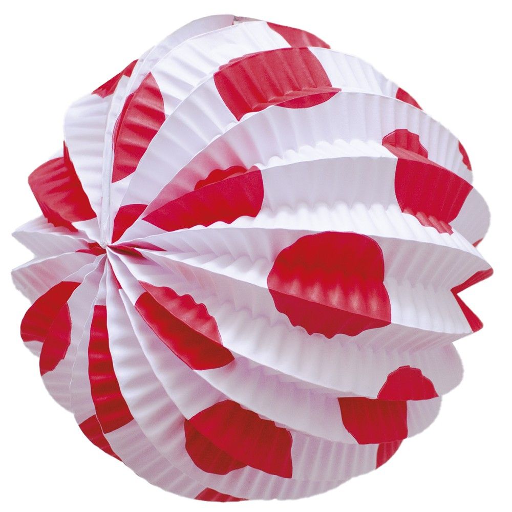 Farol andaluz blanco con lunar grande rojo, típico farol andaluz para decorar carpas, casetas, calles y plazas. Farol de papel para decorar las fiestas populares.