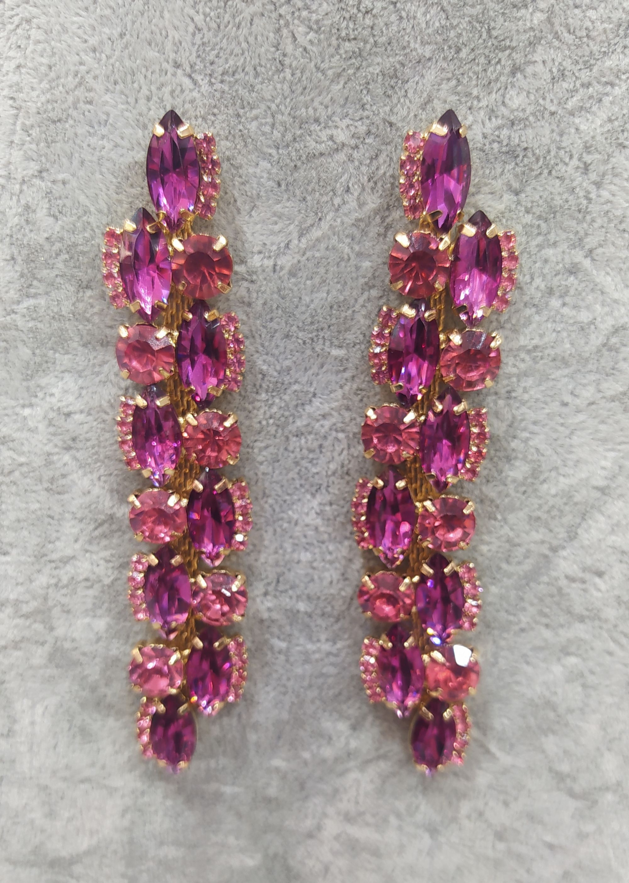 Pendientes buganvilla alargado con cierre a presion .En fondo dorado
