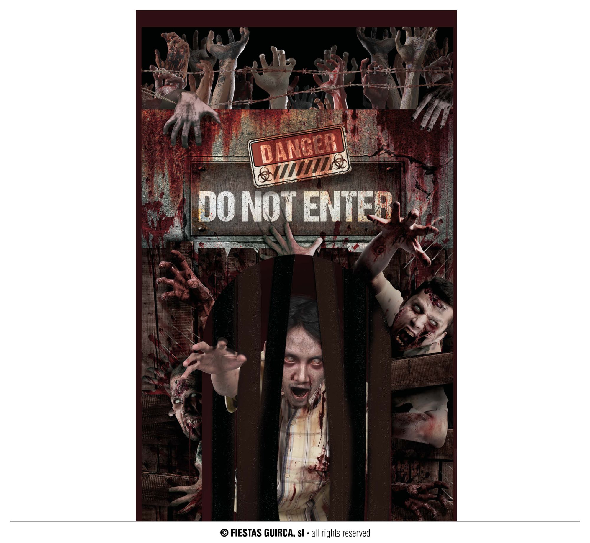 La decoración puerta zombie contiene una decoración en tela para decorar la entrada de la fiesta de halloween.