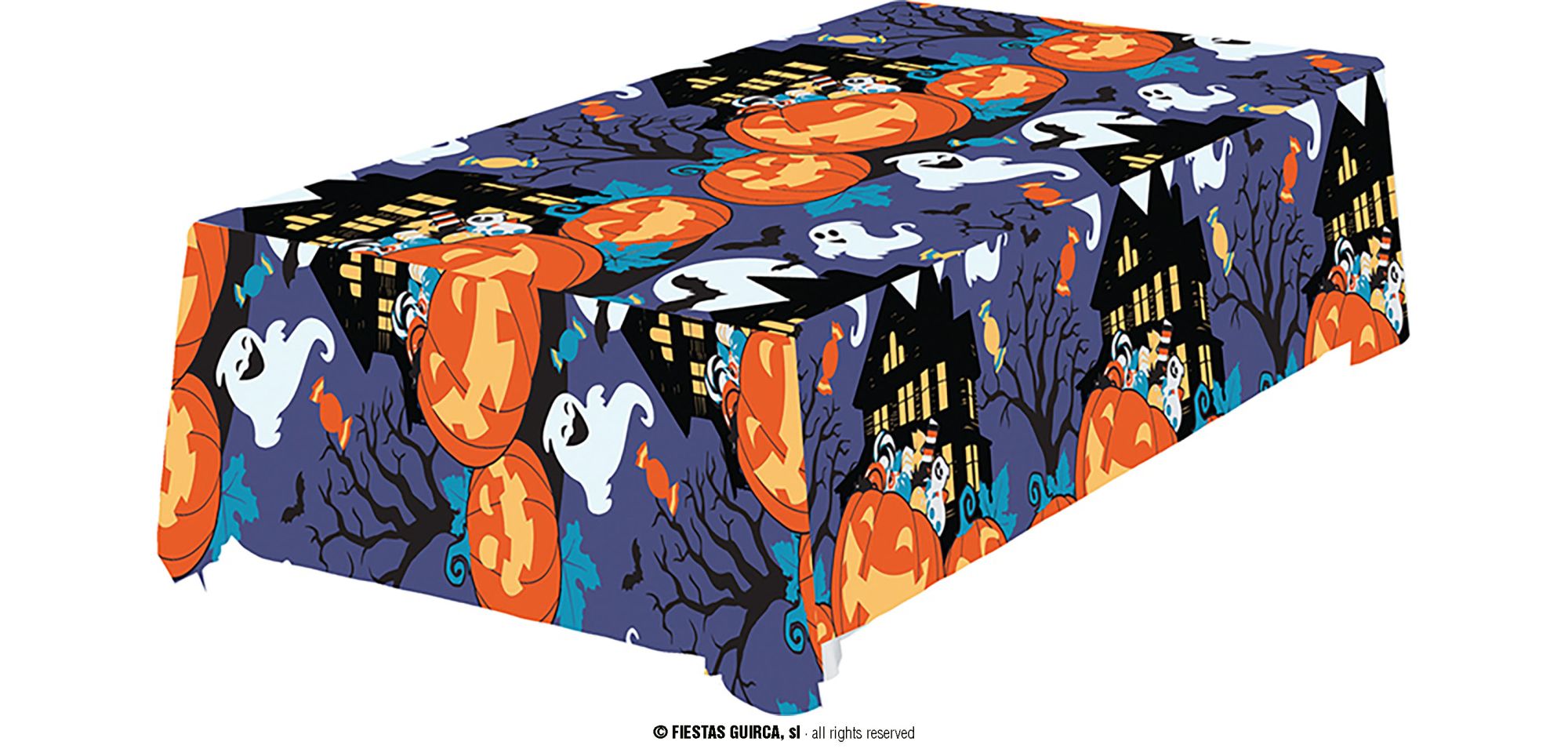 Decora la fiesta de Halloween para decora la mesa para la noche de Halloween, un mantel original y diferente para ambientar la noche de Halloween.