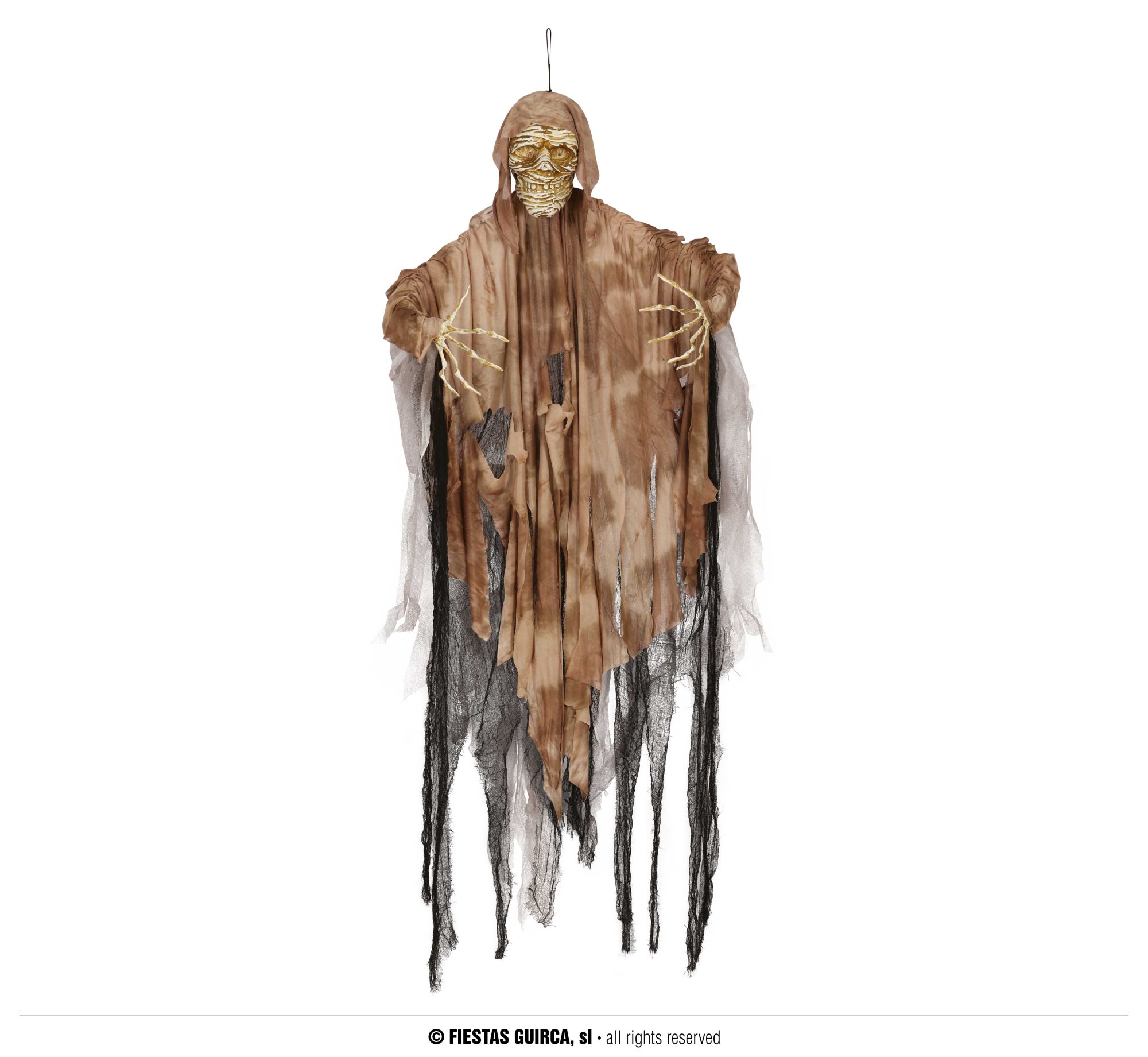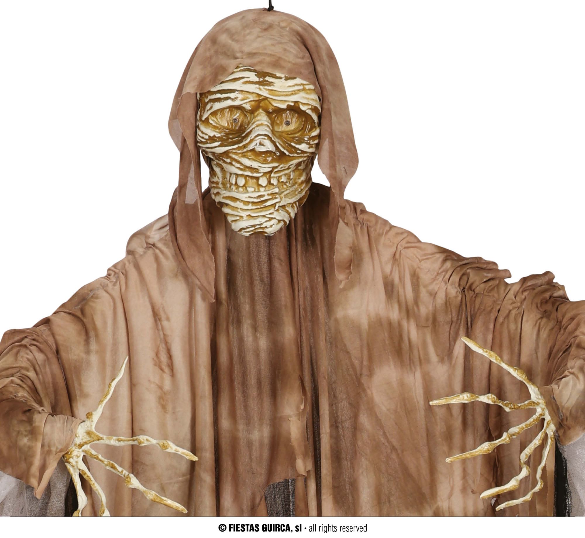 Decora la noche de Halloween con este original colgante de momia con luz, ideal para que no te falte detalle en tu fiesta de Halloween.