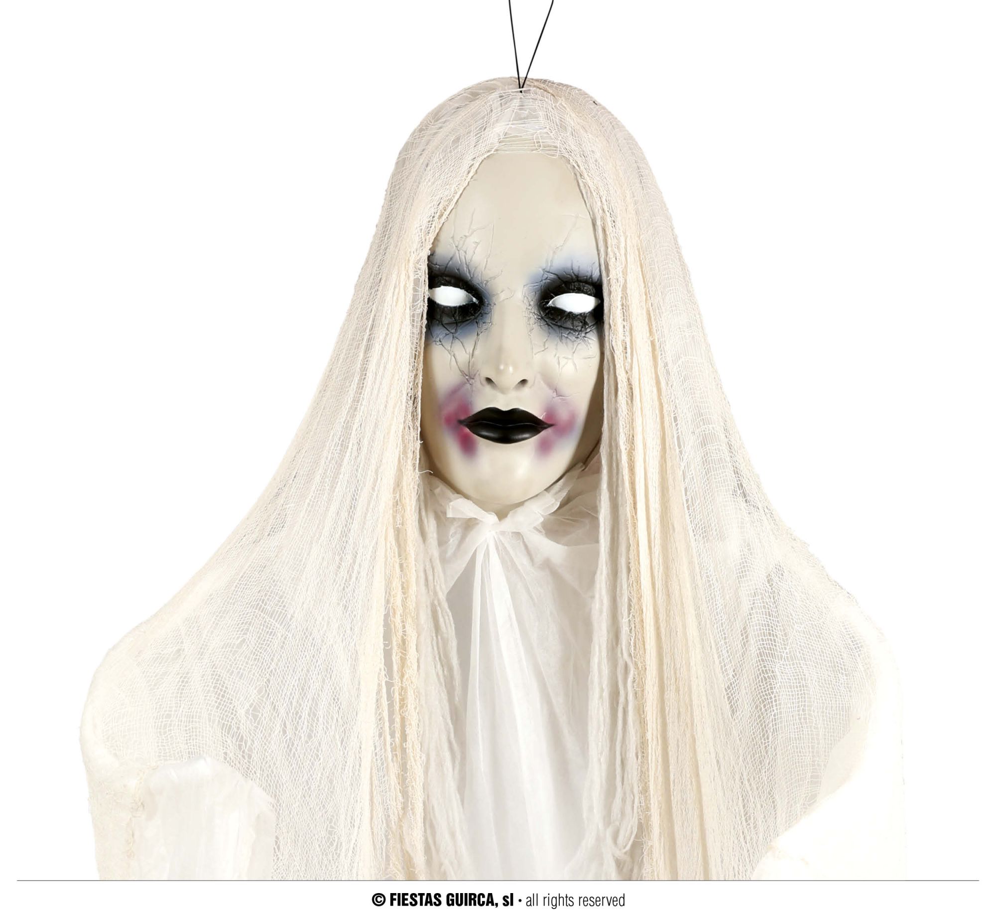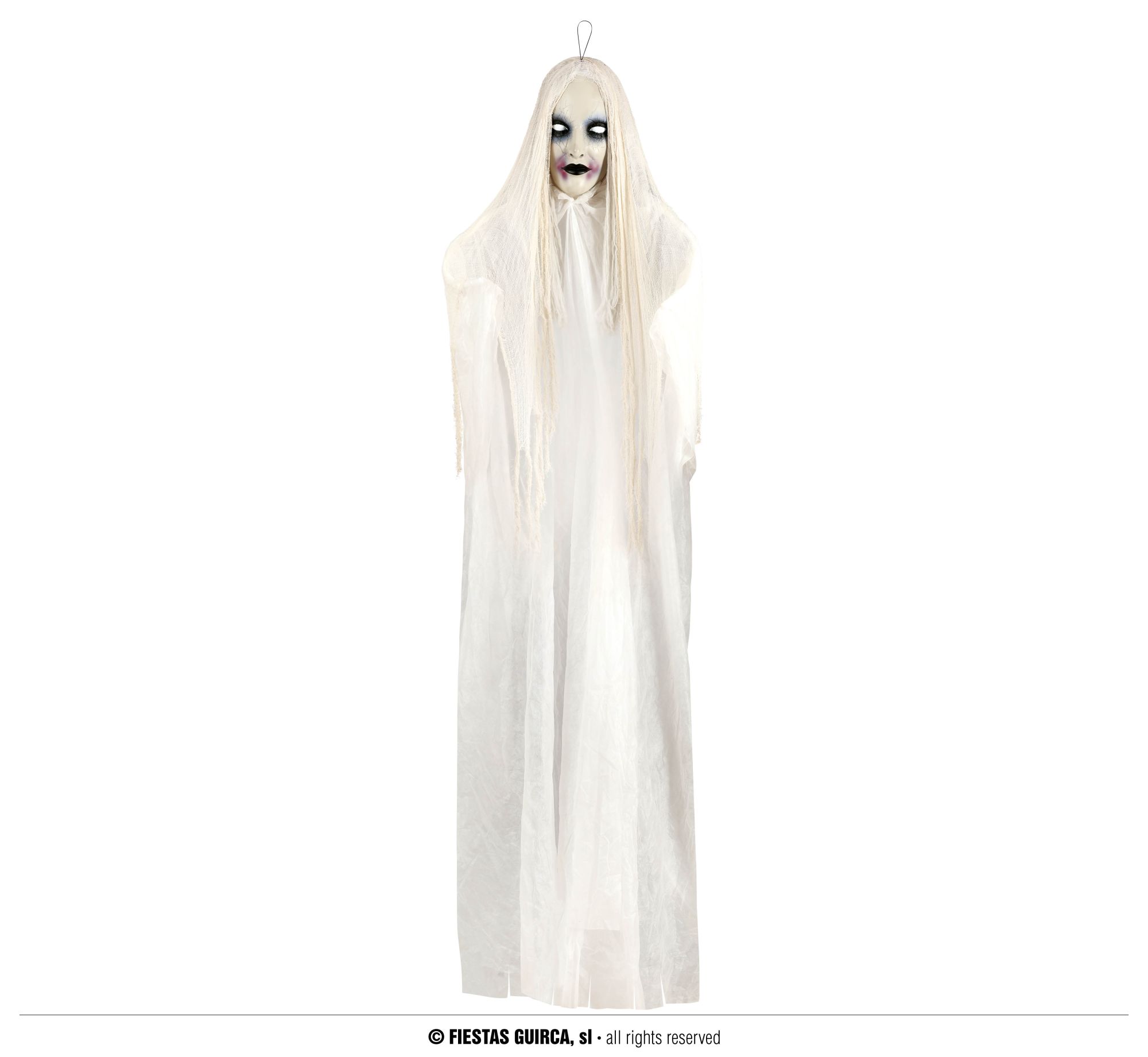 Decora la noche de Halloween con este original colgante de mujer fantasma, ideal para decorar la semana de Halloween. Un colgante de gran tamaño para decorar la noche de Halloween.