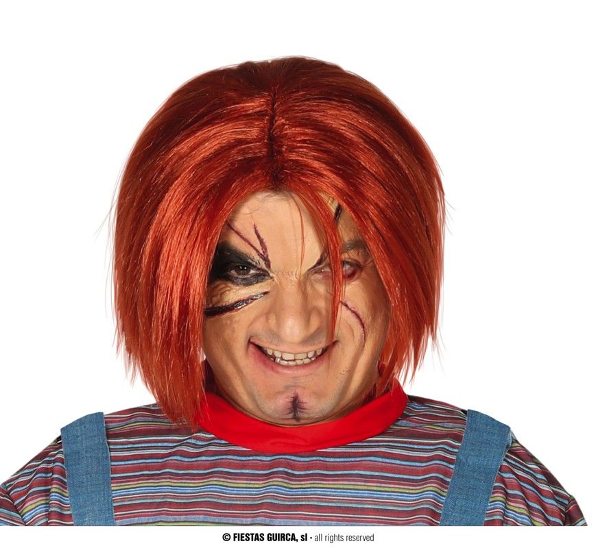 Peluca de muñeco asesino contiene una peluca para complementar tu disfraz de Chuky, un complemento que no te puede faltar en tus disfraces para Halloween,