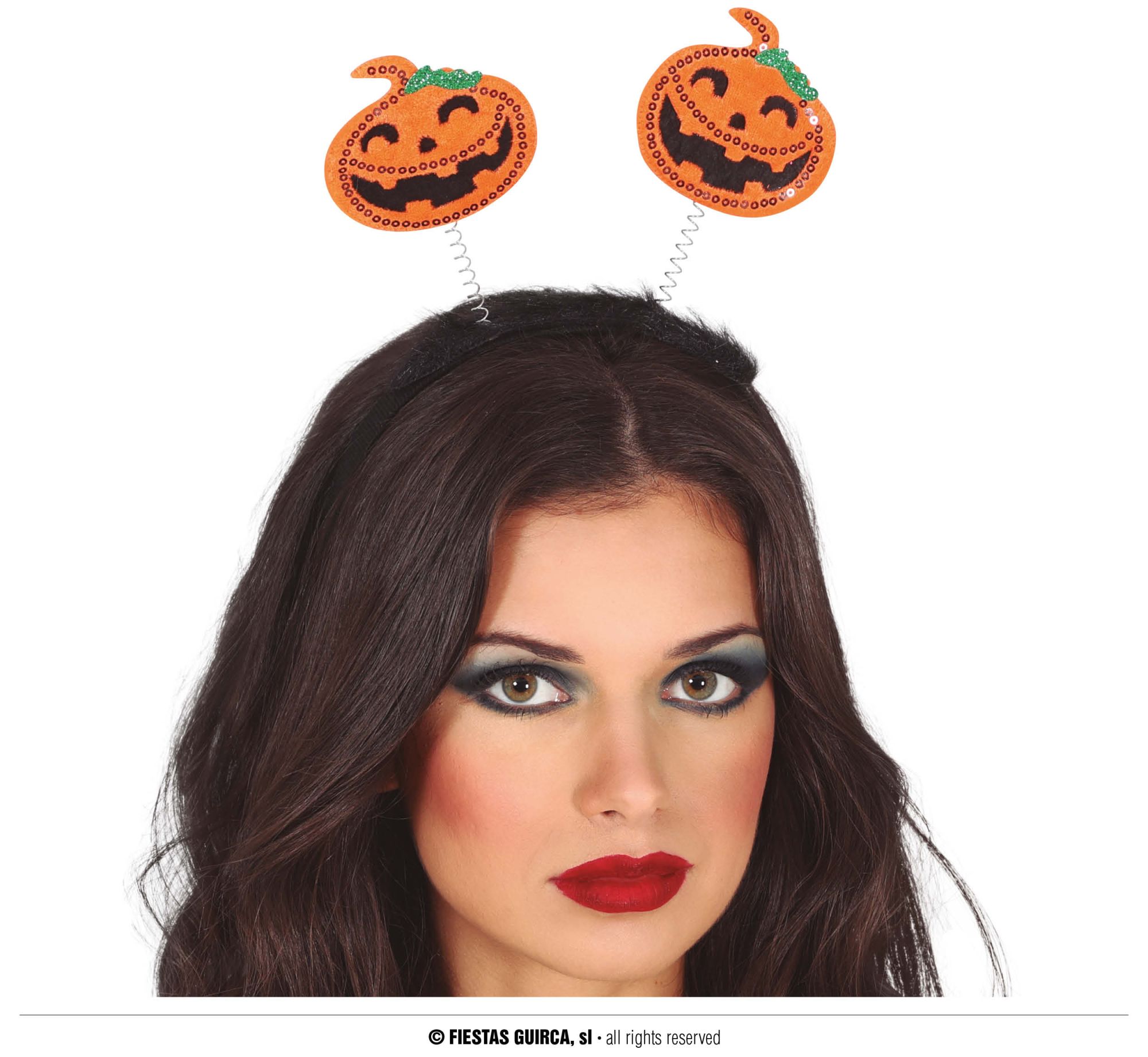 La diadema de calabazas contiene una diadema con dos calabazas para complementar tus disfraces para Halloween.