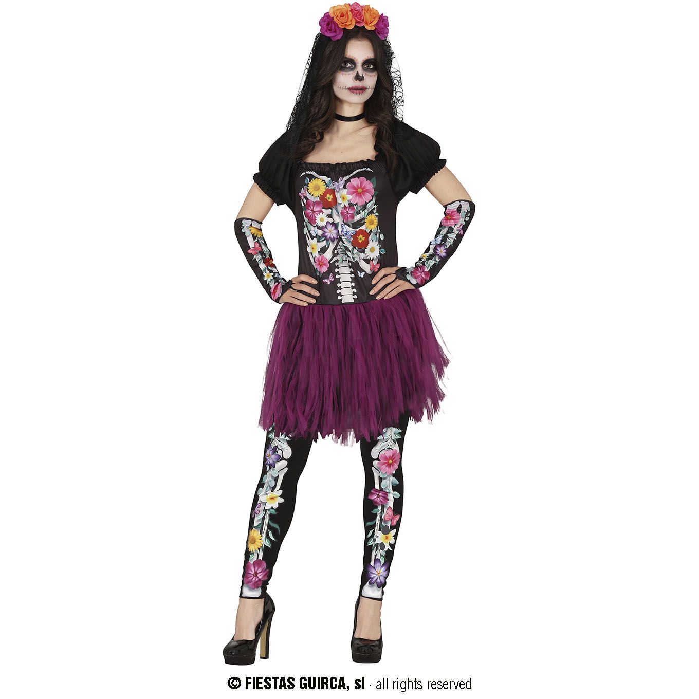 El disfraz de catrina para mujer contiene vestido, manguitos y pantalón. Gran surtido en disfraces de mujer para Halloween.