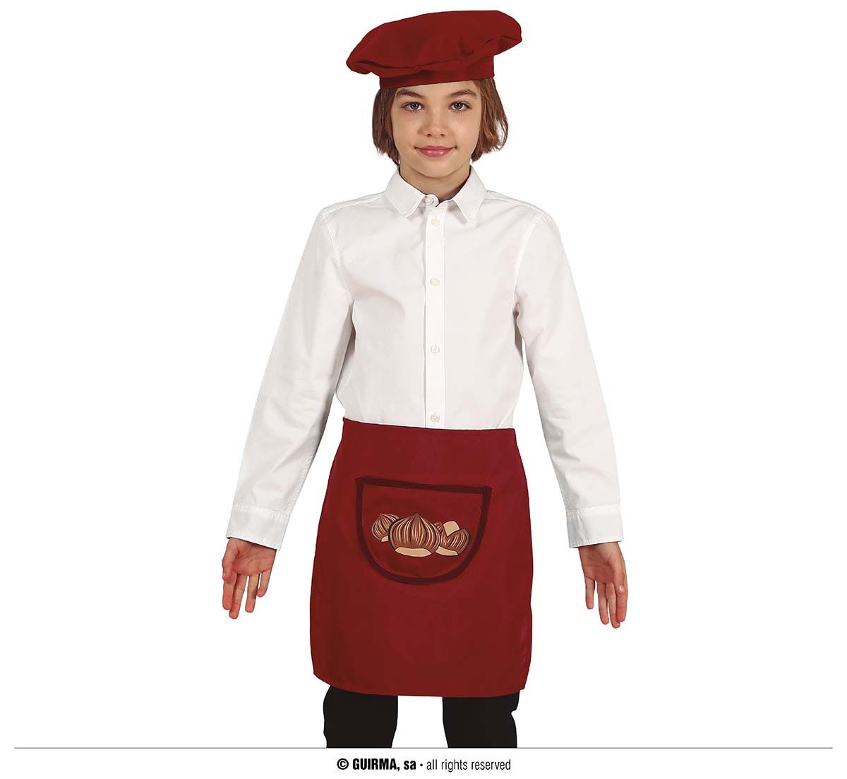 Complementa a tu niño con este original accesorio de castañero, una boina y delantal para disfrazar a los niños en navidad.