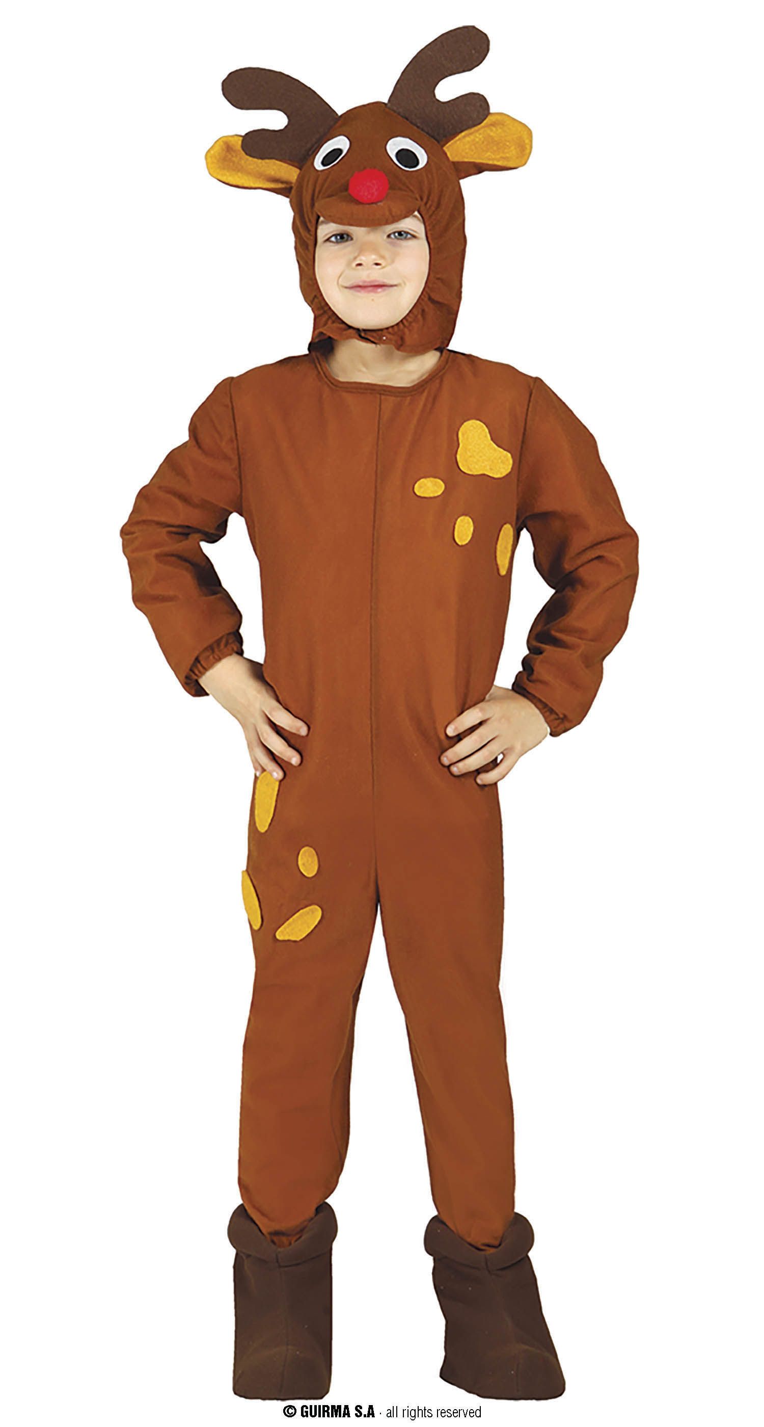 El disfraz de reno infantil contiene capucha y mono. Gran variedad en disfraces navideños para niños.
