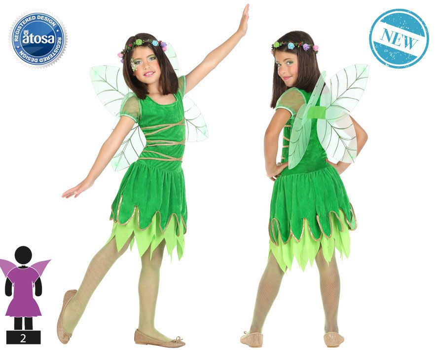 El disfraz de hada verde contiene alas y vestido. Gran variedad en disfraces para niña.