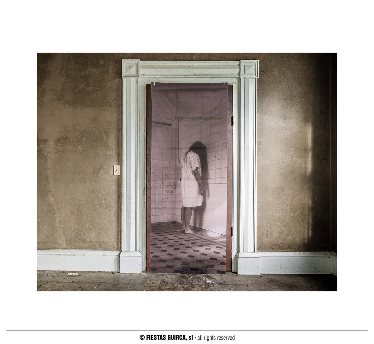 La decoración puerta niña del hospital contiene una tela para decorar paredes o puertas para la noche de Halloween.