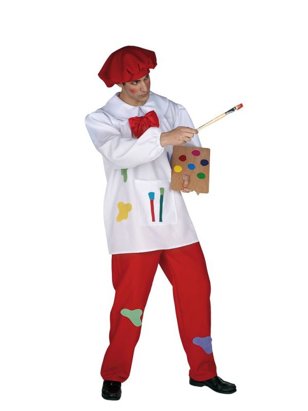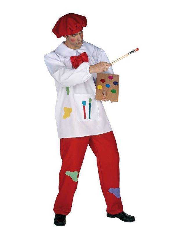 El disfraz de pintor contiene casaca, pantalón y boina. Disfraces originales y coloridos para hombre.