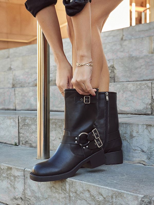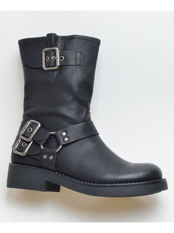 Botín biker estilo bota motera con hebillas y suela de goma.