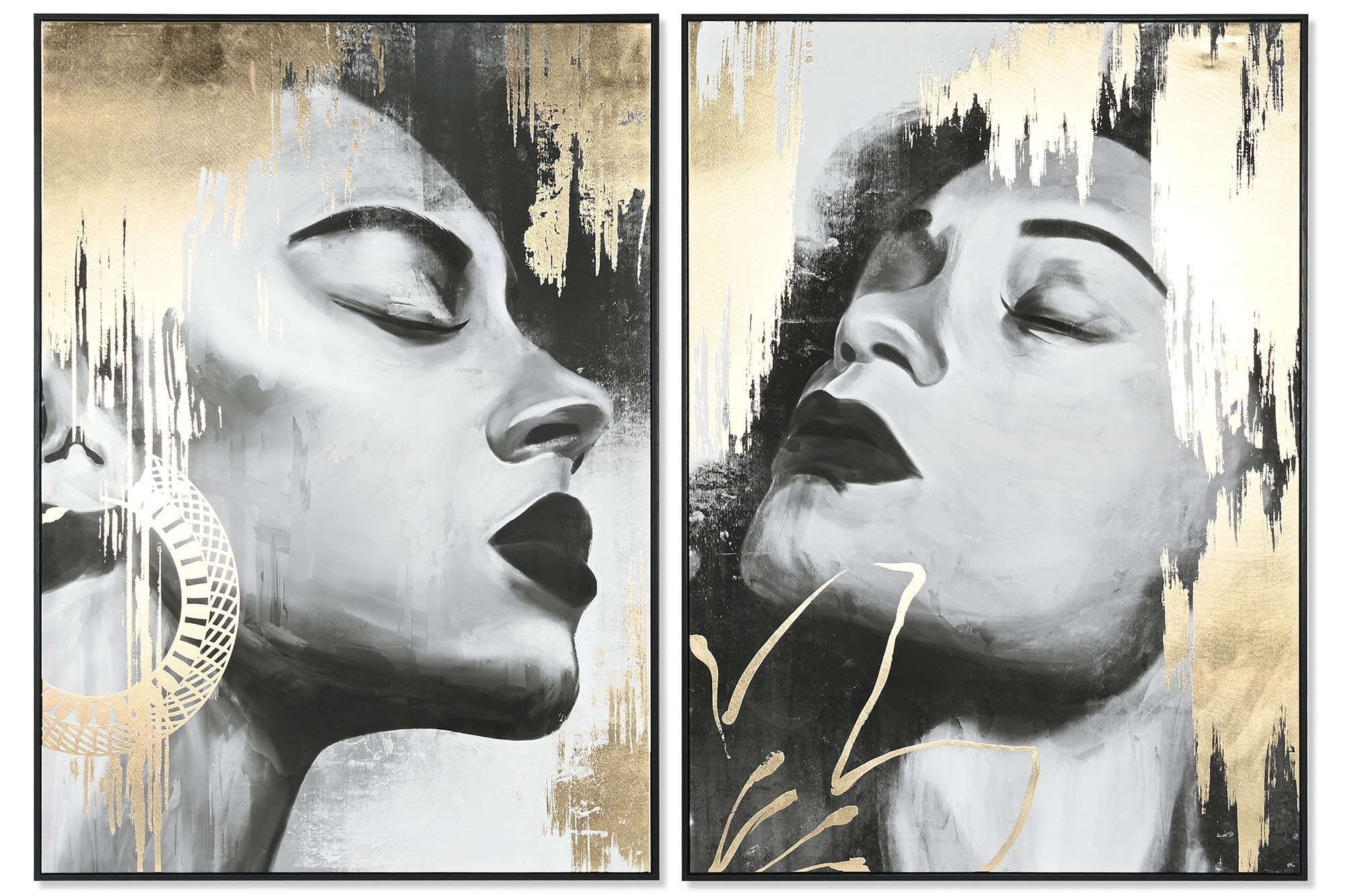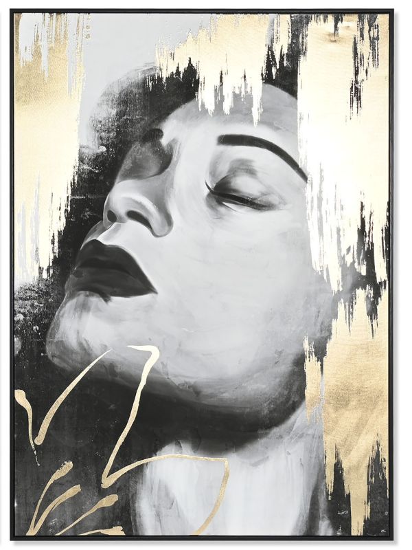 Lienzo pintado a mano con detalles en dorado.