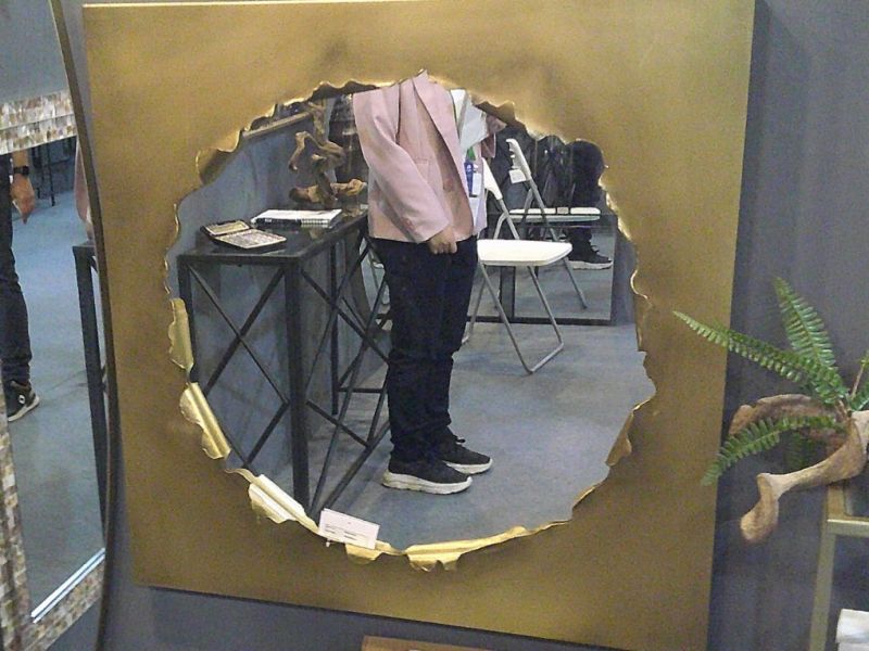 Espejo metal oro con original formato.
