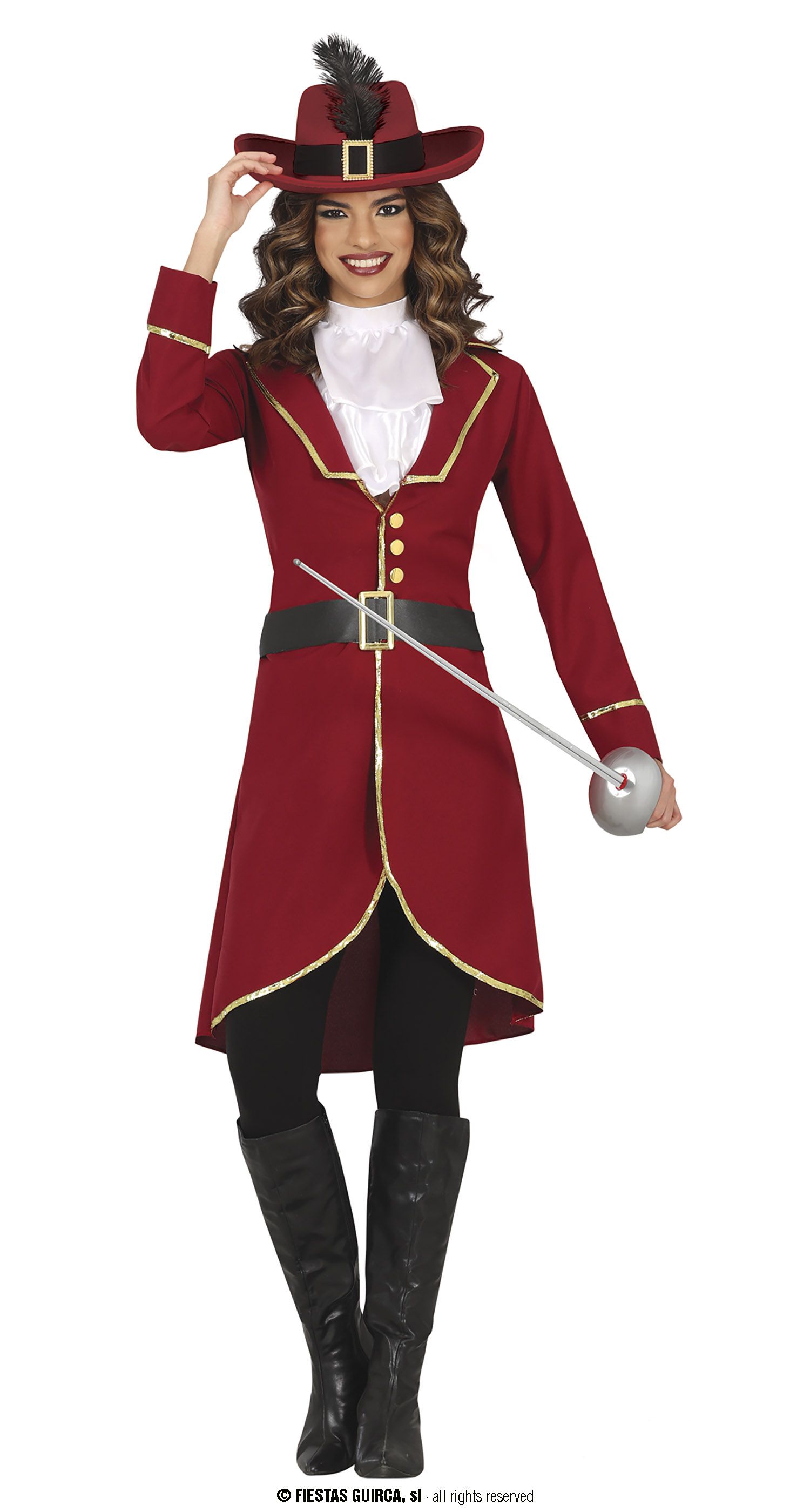 Disfrazate con este elegante disfraz de capitán corsario para chica, un disfraz original y diferente para tus fiestas de disfraces. Ideal para disfrazarse en grupo o en pareja.