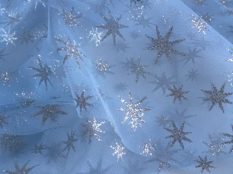 El tul con estrellas plateadas de purpurina, es un tul calado con poco cuerpo con cierta rigidez transparente,liviano de fácil manejo ,su utilidad es mut variada y completa desde complementos Navideños, decoración, disfraces, carnaval.