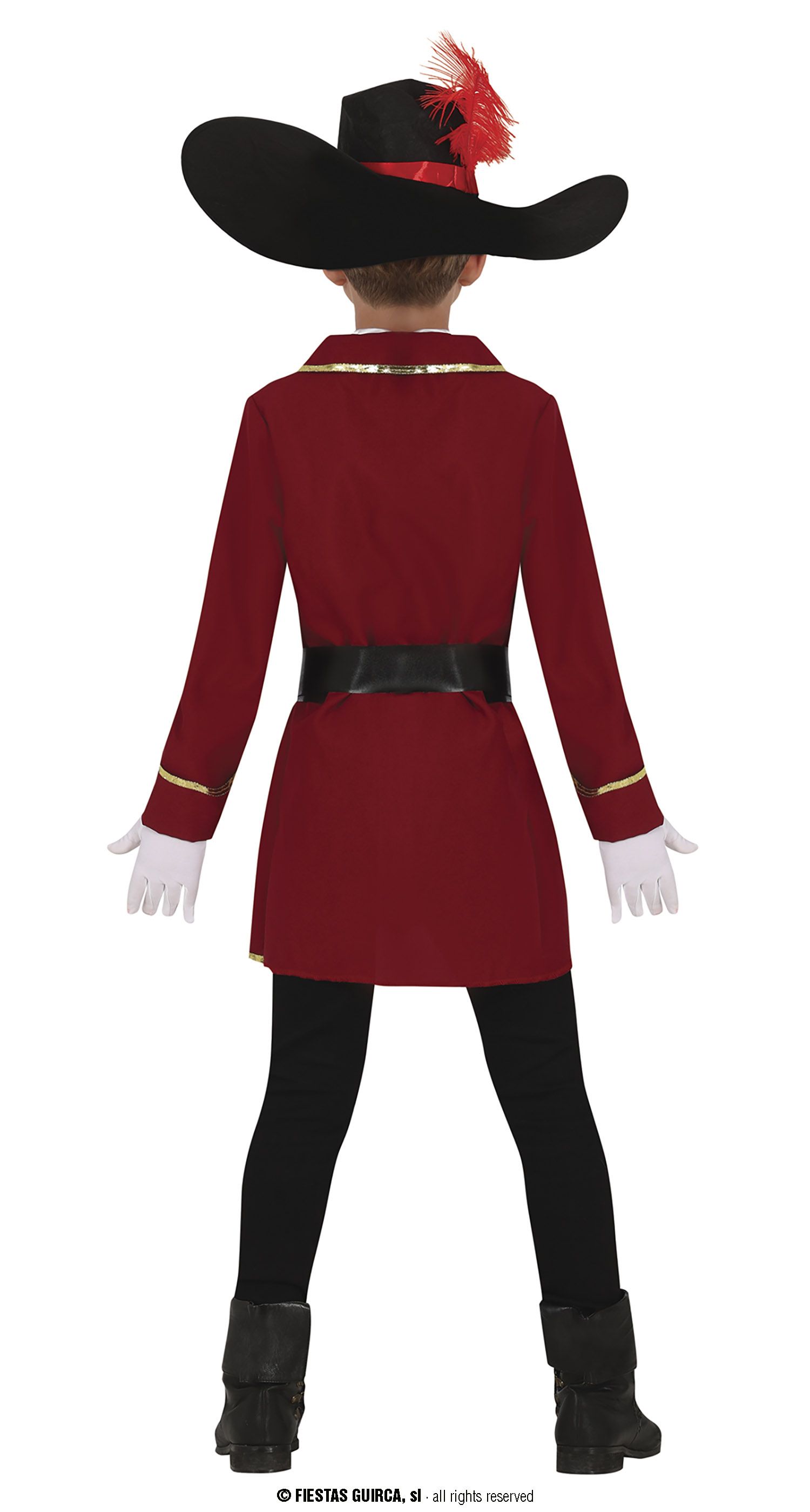 El disfraz de capitán corsario infantil contiene Chaqueta, pechera y cinturón. Disfraces de pirata para niños.