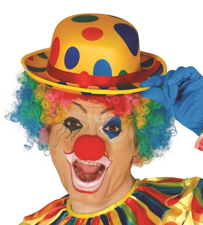 Complementa tu disfraz de payaso con este sombrero de topos, un sombrero colorido y original para disfrazarte en tus actuaciones, fiesta de disfraces.