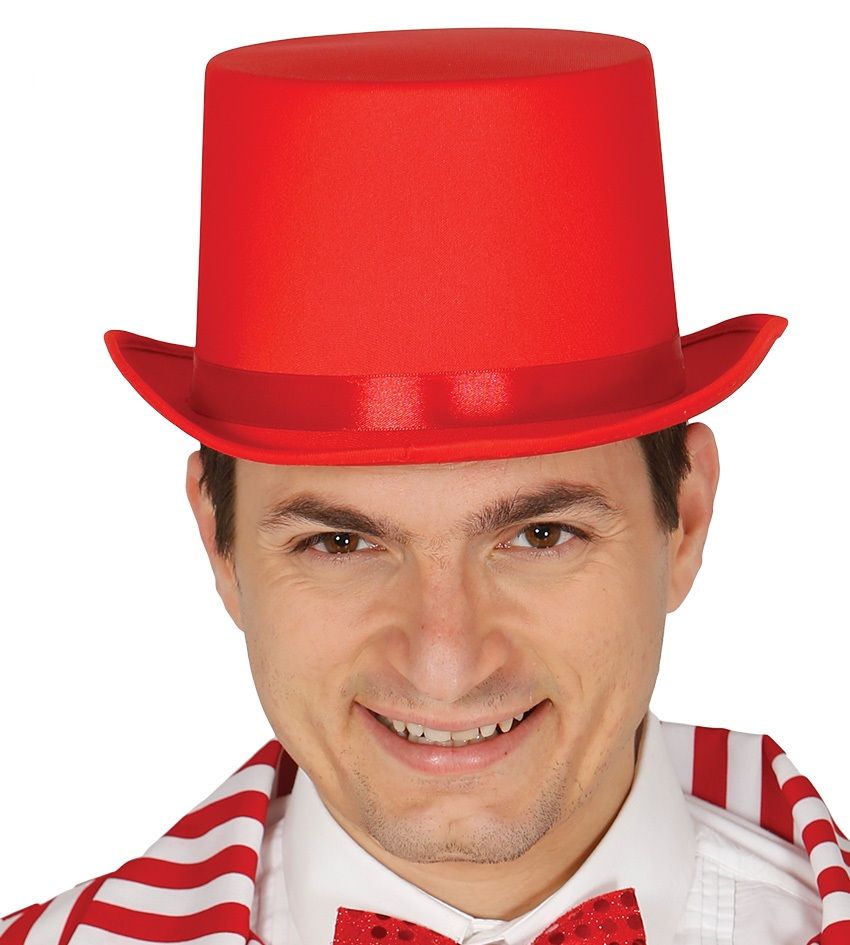La chistera Roja de alta calidad contiene una chistera roja con una cinta por dentro del sombrero para una mejor sujección