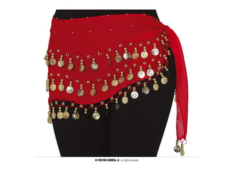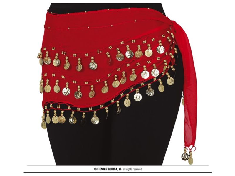 Complementa tus disfraces con este elegante pañuelo de monedas para complementar tu disfraz de danza del vientre.