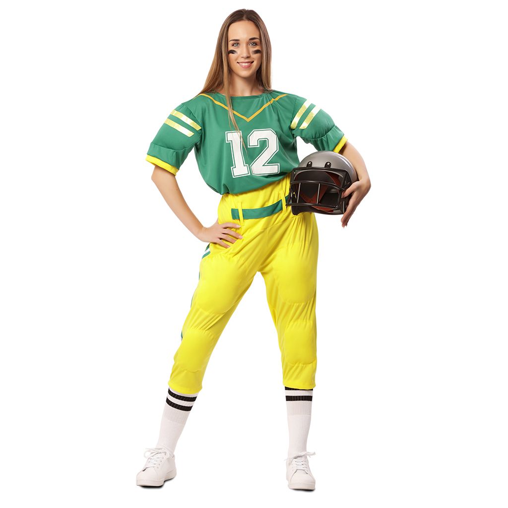 El disfraz de jugadora de rugby verde contiene, pantalón y camiseta. Disfraces originales para mujer.