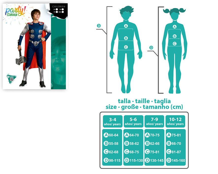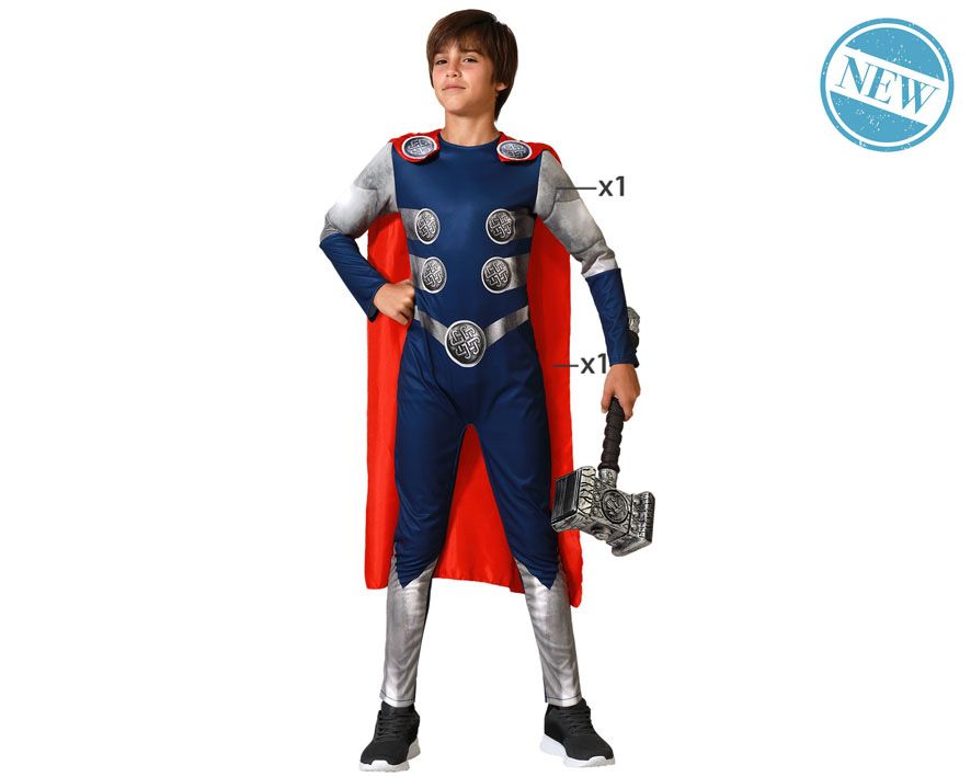 El disfraz de Superhéroe del Trueno Infantil contiene Mono y capa. Disfraz de Superhéroes para niños.