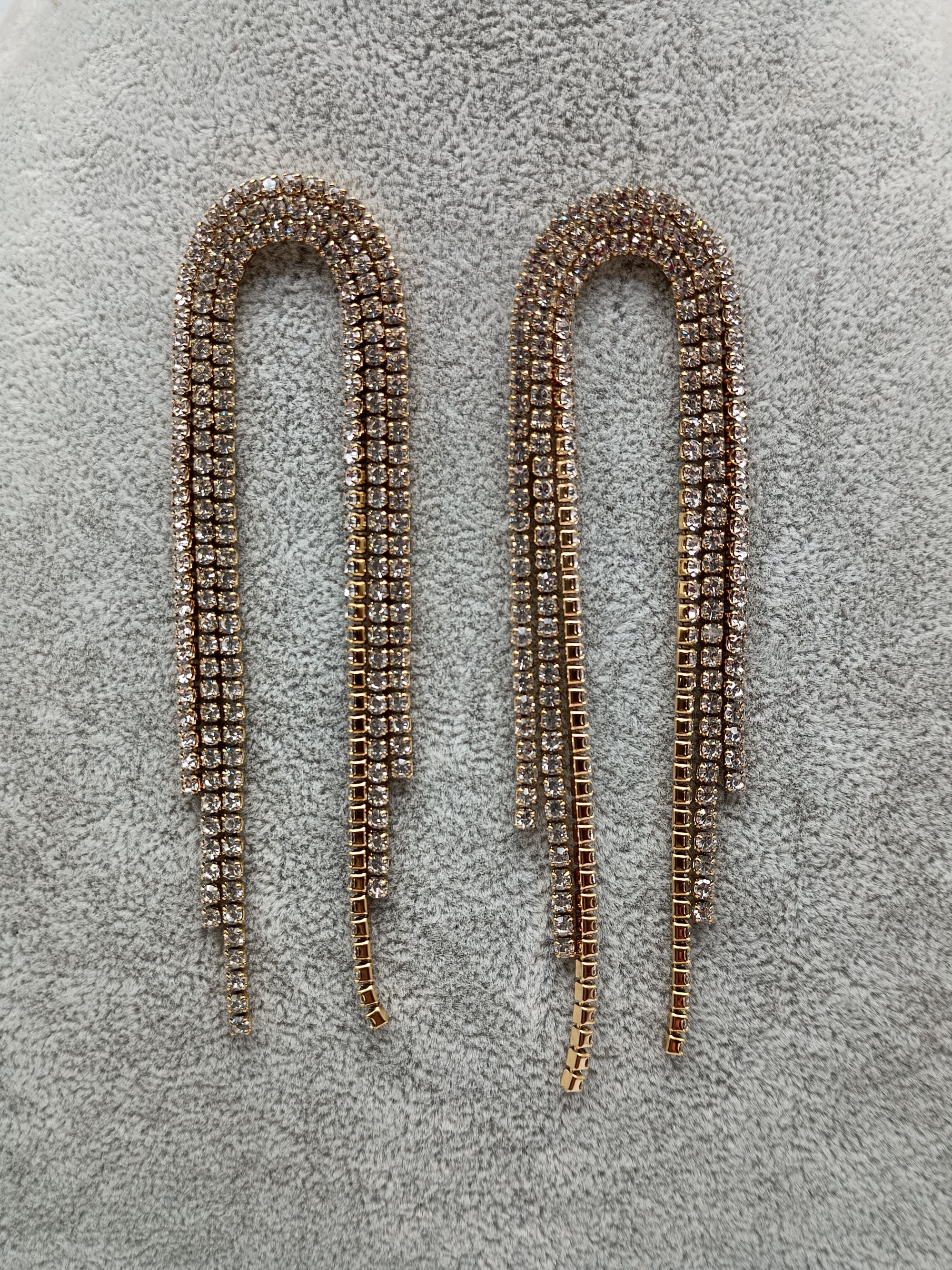 Pendientes dorados en forma de uve con cristalitos Cierre de gancho.