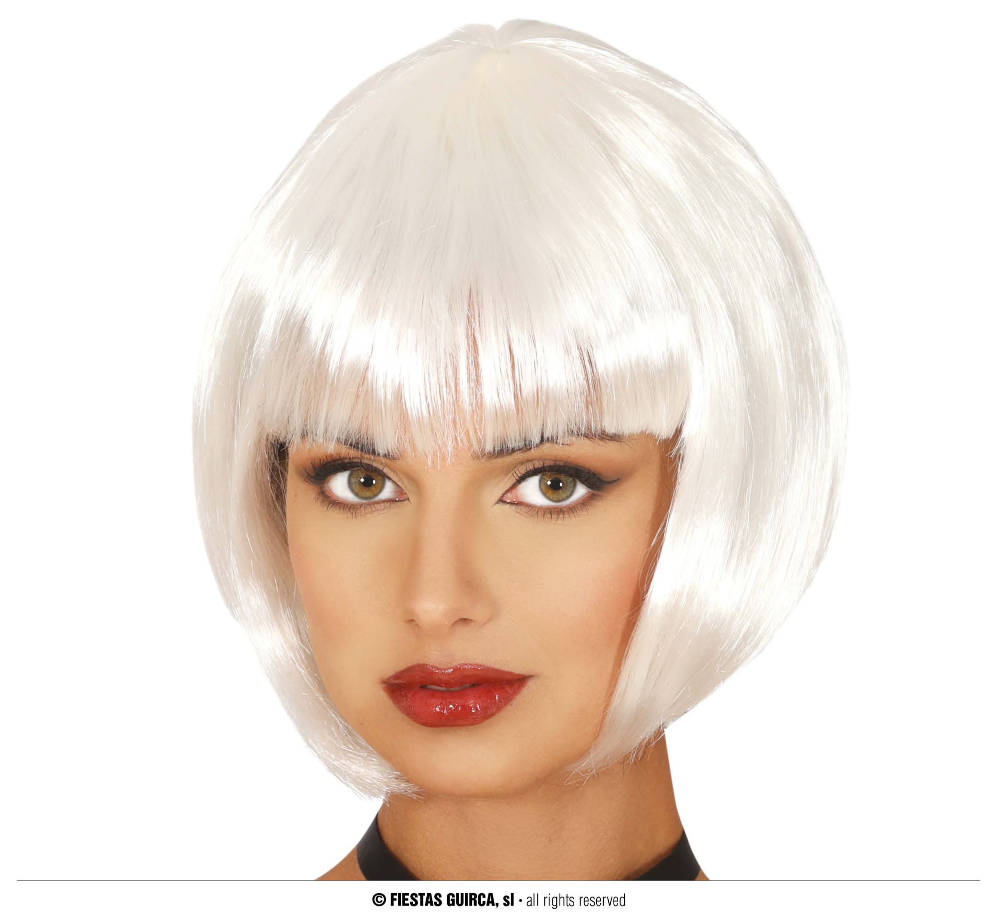 la peluca media melena blanca contiene una peluca de media media melena en color blanco. Pelucas para complementar disfraces.