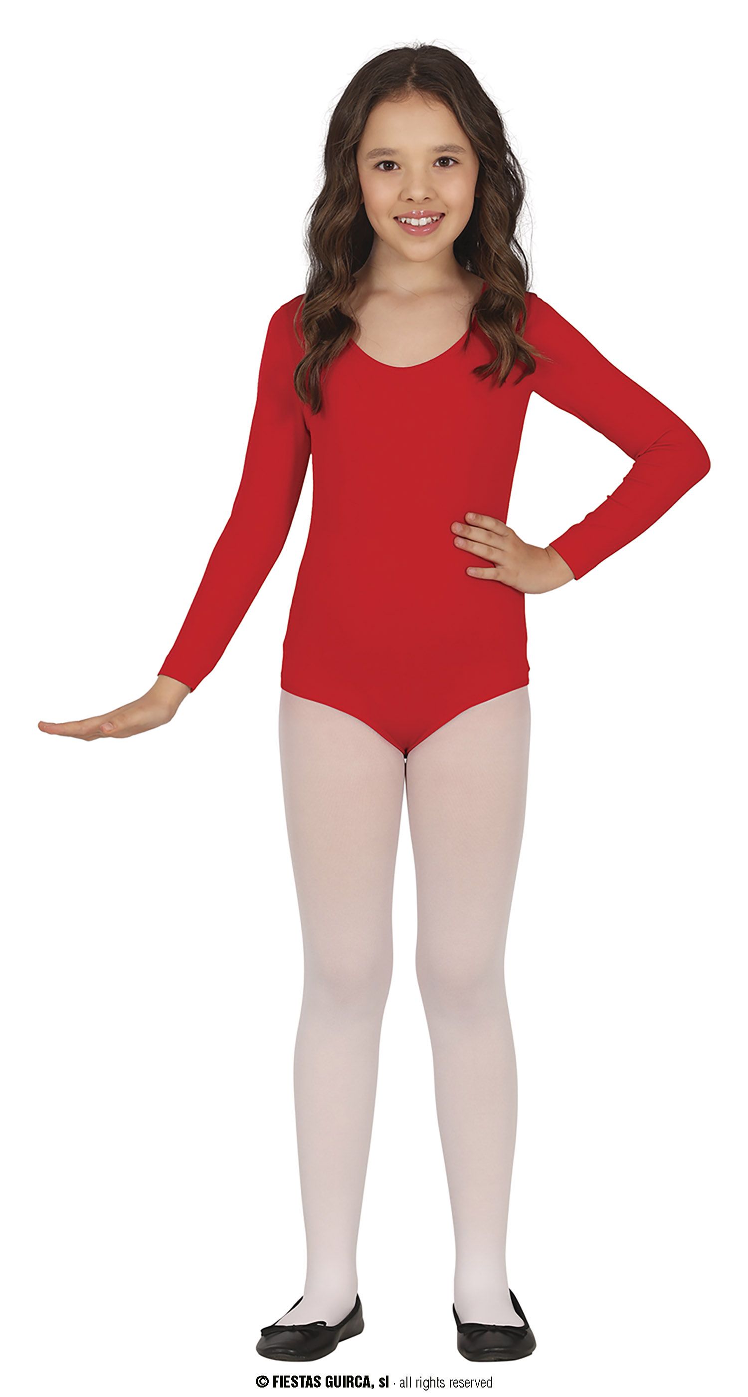 El maillot de manga larga infantil contiene un maillot de manga larga en color rojo. Maillot para baile o para complementar disfraces.