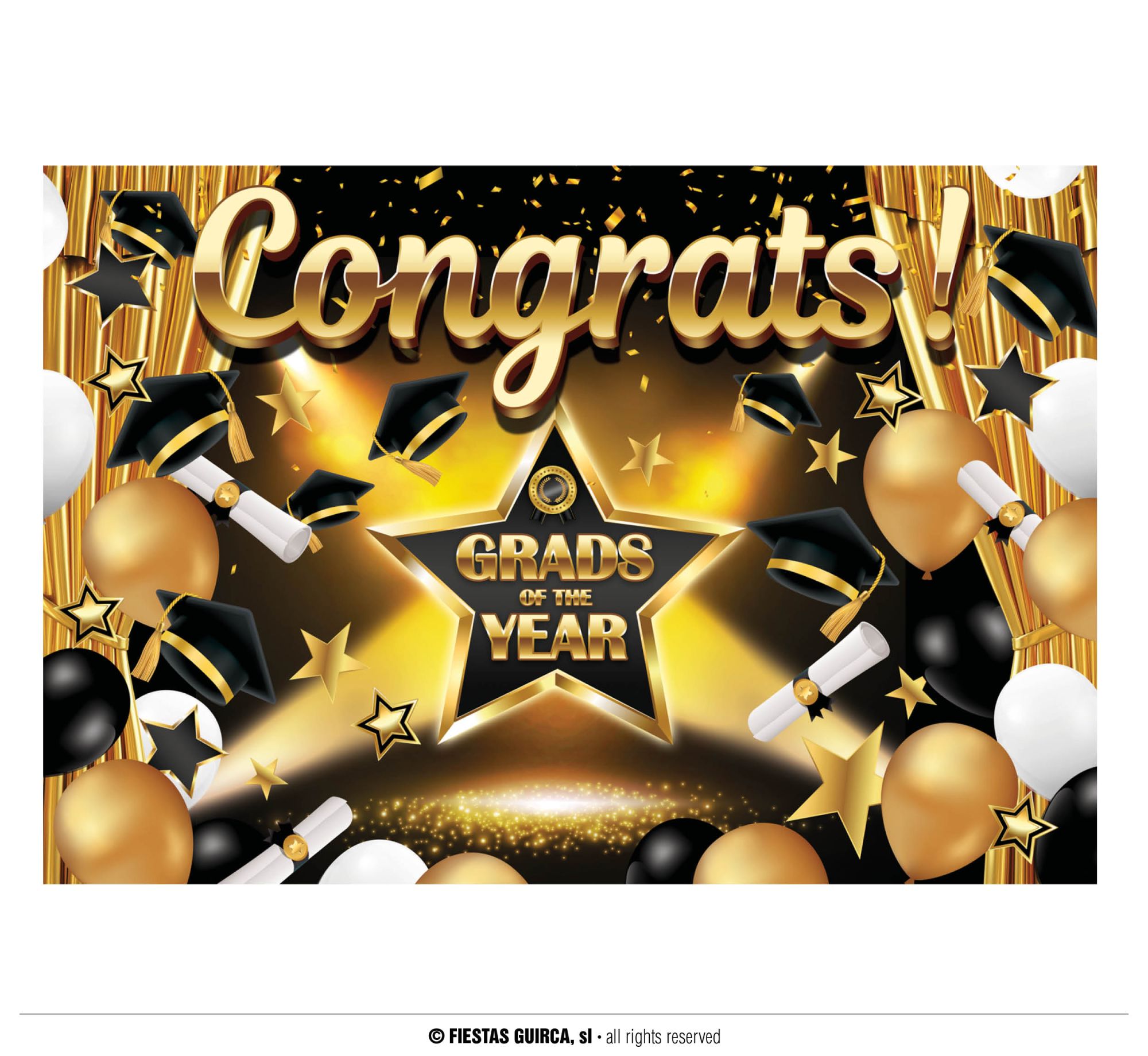 Decora la graduación del final de curso con este original photocall. Ideal para las fiestas de final de curso, para que todos los alumnos tenga su foto del final de fiesta.