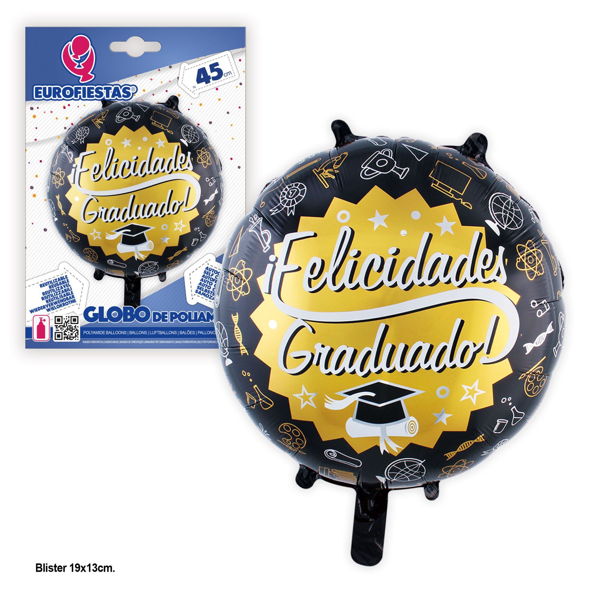 Decora el evento de final de curso con este globo para la fiesta de final de curso, ideal para que no falte detalle para ese dia tan especial de los alumnos. Se puede inflar con helio o con aire.