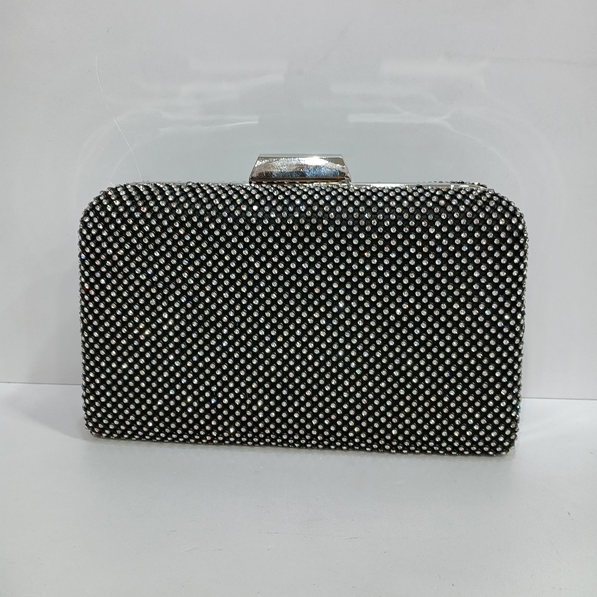 Bolso negro de brillantes por las dos caras . Cadena y cierre en plateado.