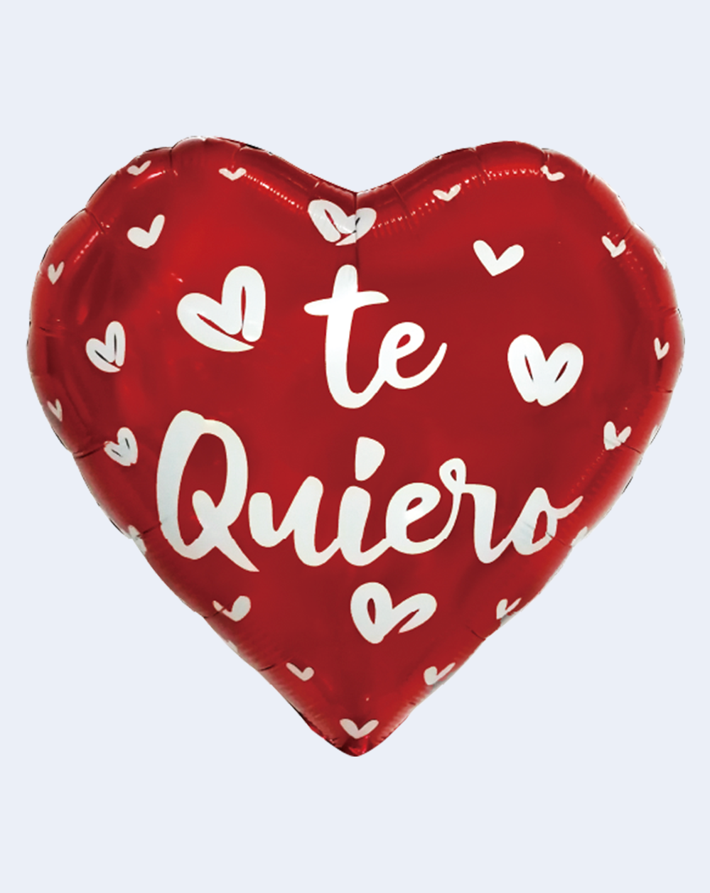 El globo foil de corazon te quiero contiene un globo de foil escrito Te quiero en el globo.