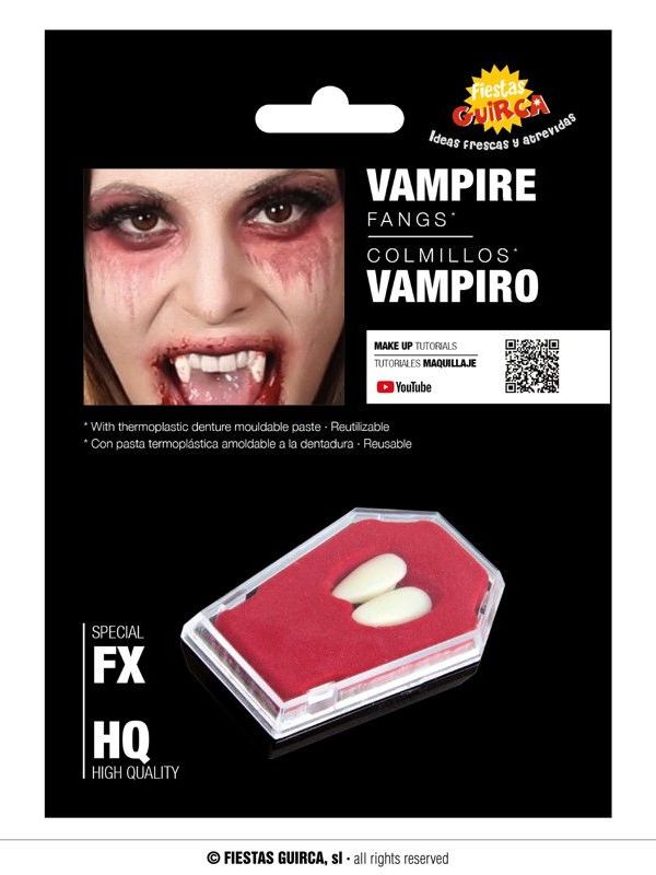 Si quieres poner a tu dentadura unos colmillos reales y ser un vampiro con estos colmillos conseguiras ese efecto para dar en efecto mas real a tu dentadura.