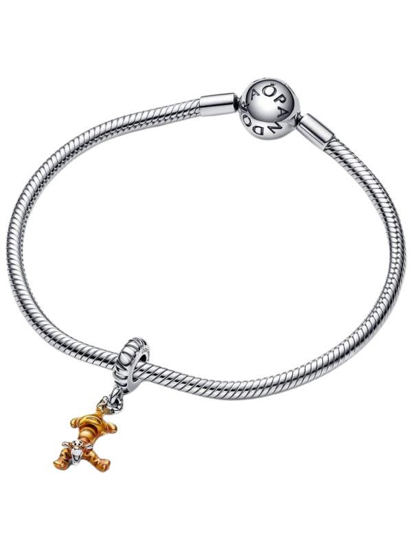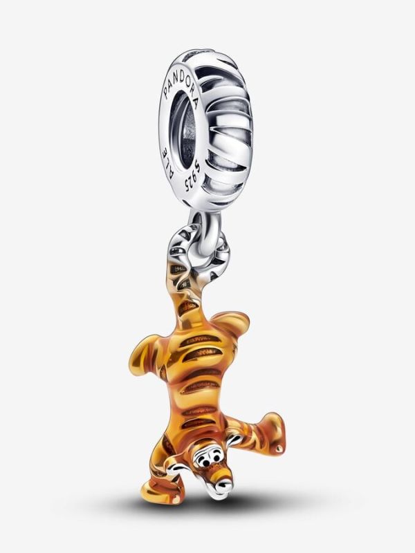 Salta de alegría con Tigger de Disney, el personaje alegre y vital del Bosque de los Cien Acres. El Charm Tigger de Winnie the Pooh de Disney, en plata de primera ley, representa a Tigger en la mitad de un salto al revés con su cola extendiéndose hacia arriba para formar un lazo que se une en la anilla. Su cuerpo se presenta con rayas y esmalte de color naranja. Lleva este charm con otros de Winnie the Pooh y sus amigos como recordatorio de que siempre debes buscar la alegría.