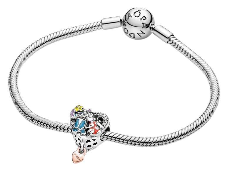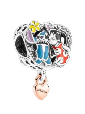 Celebra la alegría de la familia y la amistad con Lilo y Stitch de Disney. Este charm con forma de corazón en plata de primera ley de Lilo y Stitch presenta a estos personajes tan queridos que cobran vida mediante colorido esmalte aplicado a mano y enmarcados por una fila de circonitas cúbicas. El reverso del corazón presenta la cita "OHANA means family" (OHANA significa familia) y por debajo cuelga un pequeño corazón con recubrimiento electrolítico en oro rosa de segunda ley de 14k con la palabra "OHANA" grabada en un lateral. El regalo perfecto para los grandes amantes de Disney de tu familia.