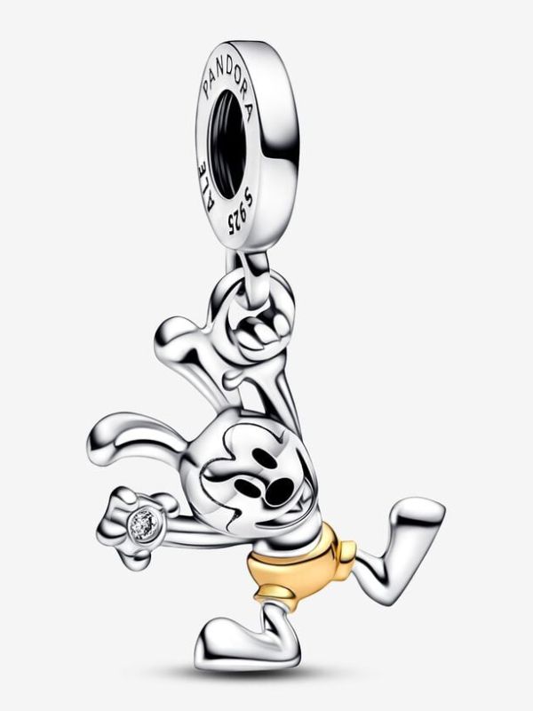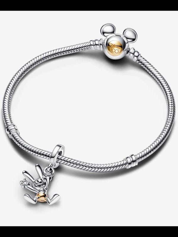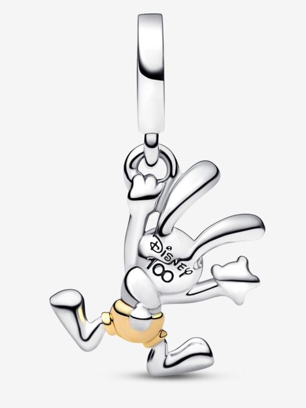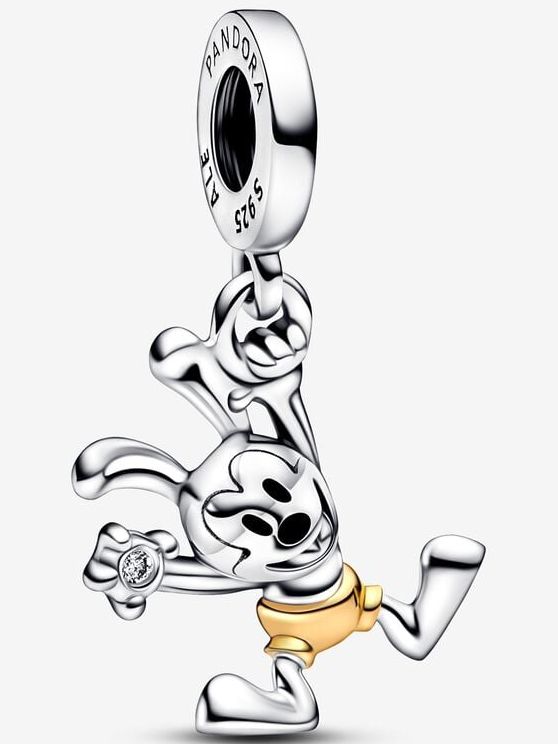 Para ese amante incondicional de Disney: colecciona nuestro Charm Colgante Oswald 100 Aniversario de Disney y rinde un homenaje a uno de sus personajes originales. Oswald se presenta acabado a mano en plata de primera ley con los ojos pintados con esmalte de color negro aplicado a mano y pantalones en oro de 14k. El conejo se presenta sujetando juguetonamente un brillante diamante sintético con una mano y balanceándose de un anilla con la otra. Para conmemorar 100 años de magia, el reverso de su cabeza se ha decorado con la inscripción "Disney 100". Lleva este charm de edición limitada, como recordatorio de que tienes que hacer realidad tus sueños, al igual que Oswald.