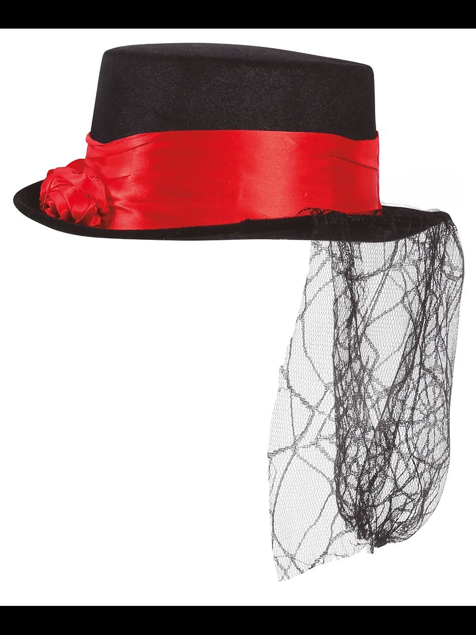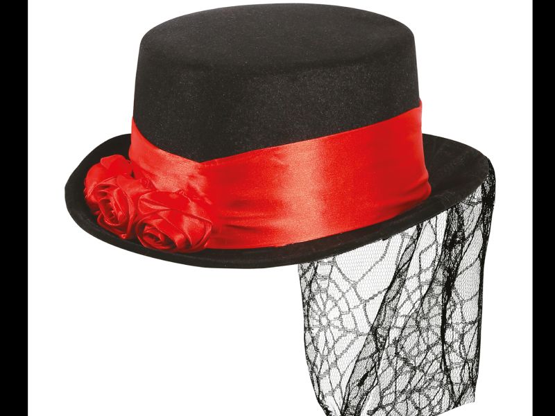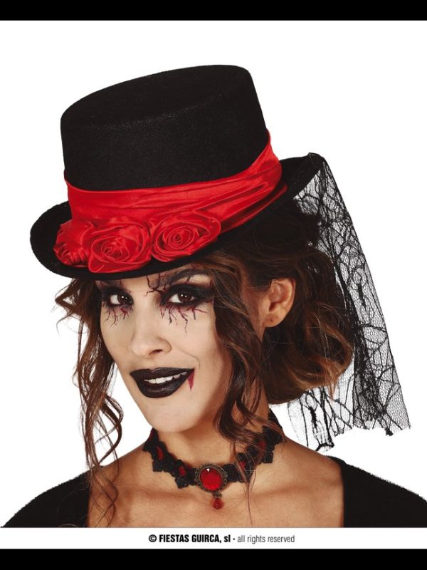 El sombrero de vampiro negro contiene una chistera de color negra y con cinta roja.